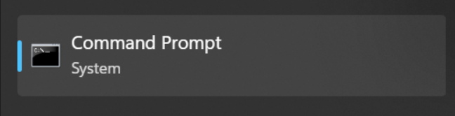 The vicpyx module is available on The Python Package Index and can be installed with pip. First, a command prompt is opened, for example by selecting Command Prompt from the Windows start menu: